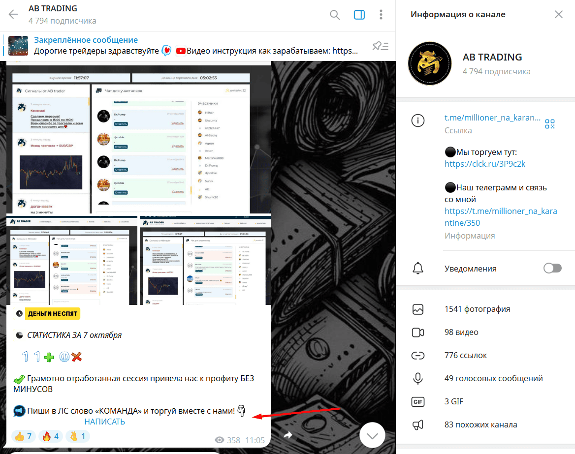 “Пиши в ЛС слово КОМАНДА и торгуй с нами!”