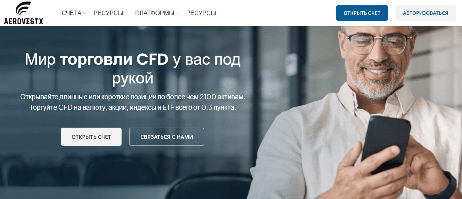 Aerovestx позиционирует себя как международного CFD-брокера с доступом к более чем 2100 торговым активам, низкими спредами и круглосуточной поддержкой. На сайте заявлены сразу несколько регуляторов — ASIC, FCA, DFSA и CSSF, а также миллионы зарегистрированных пользователей и офисы по всему миру.