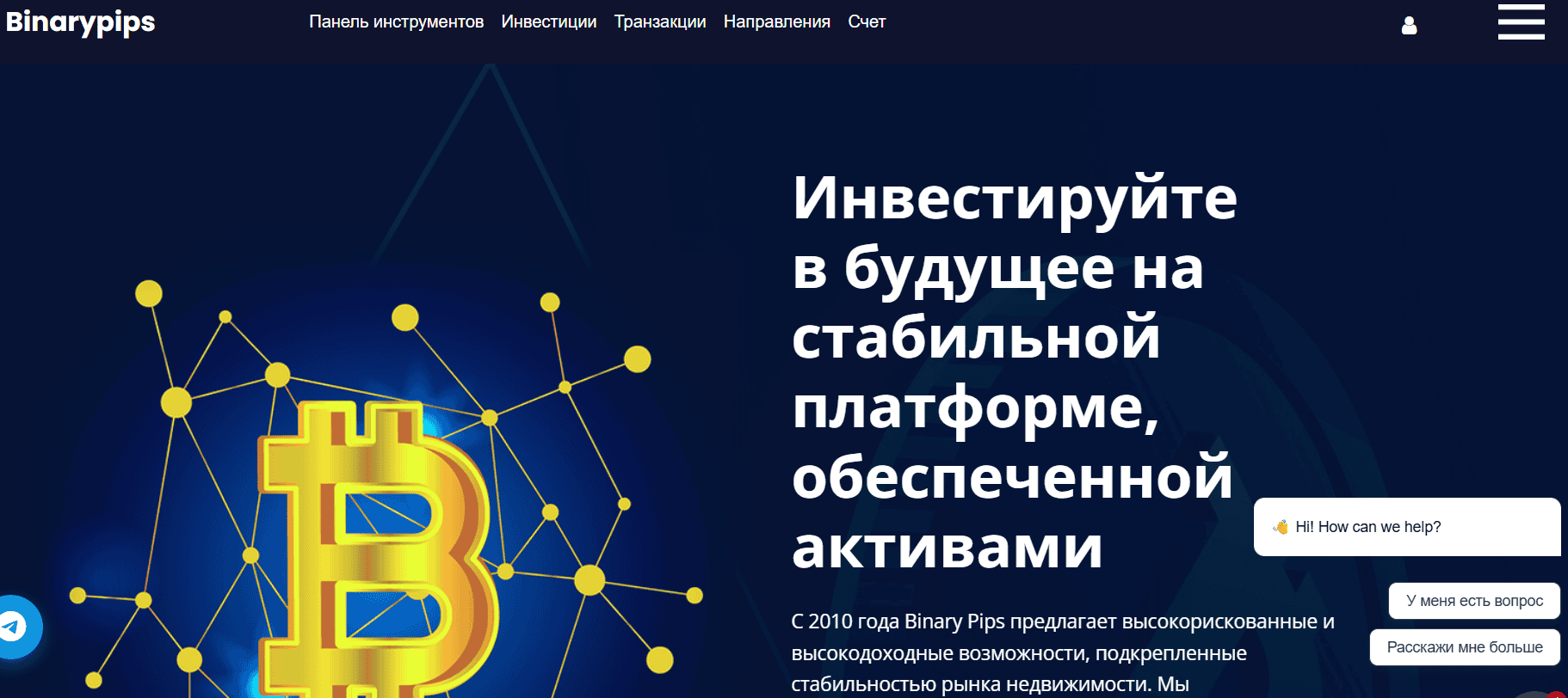 Binary Pips позиционирует свои продукты как высокодоходные, обеспеченные активами, стабильные, поддерживаемые рынком недвижимости.