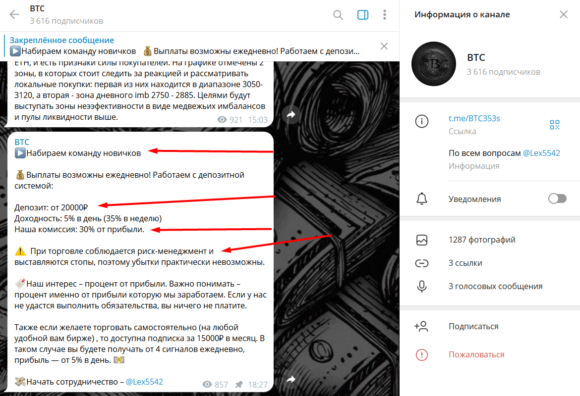 Канал BTC (t.me/BTC353s) — не инвестиционный проект, а очередной Telegram-развод, работающий по принципу “принеси депозит — получи обещания”.
