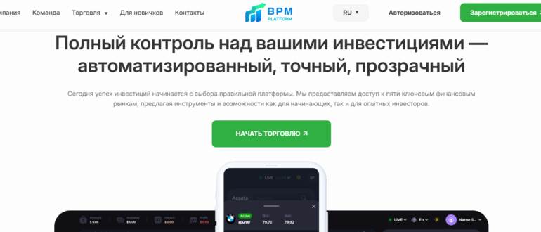 BPM Platform позиционирует себя как инновационную автоматизированную платформу для инвестиций с точными сигналами, прозрачностью и полным контролем над активами. На сайте представлены инвестиционные инструменты, данные о многолетней истории,…
