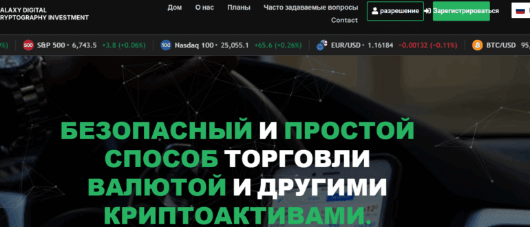 Площадка, действующая под названием Galaxy Digital Cryptography Investment, позиционирует себя как технологически продвинутый сервис для торговли криптовалютами и валютными парами. На сайте размещены тезисы о безопасности, высокой ликвидности,…