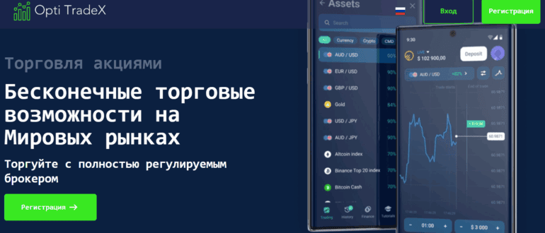 Проект Opti Tradex активно продвигается как “регулируемый брокер с бесконечными торговыми возможностями на мировых рынках”. На сайте обещают инновационные стратегии, торговлю акциями, криптовалютами, металлами и даже персональное обучение….