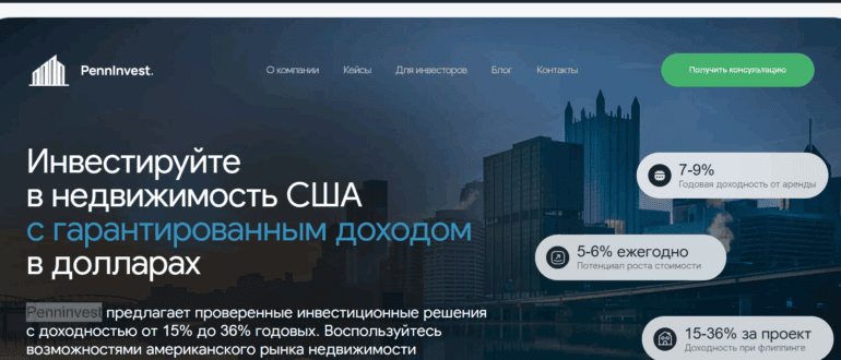 Сегодня разбираем компанию PennInvest (сайт penninvest-group.com), которая активно продвигается в русскоязычном сегменте как “инвестиционный проект в недвижимость США с гарантированным доходом в долларах”. Звучит солидно, но за красивыми…