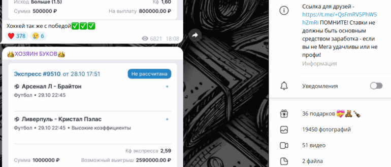 Телеграм-канал «ХОЗЯИН БУКОВ» активно продвигается как «профессиональный источник прогнозов» и обещает подписчикам быстрый заработок на спортивных ставках. Автор канала позиционирует себя как эксперта, который “ежедневно бьёт букмекеров” и…