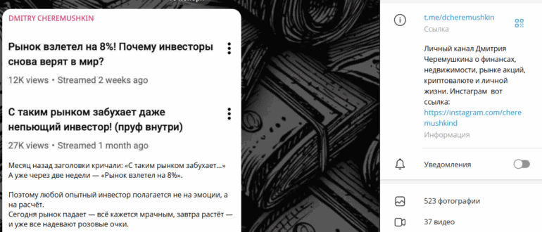 В Telegram всё чаще появляются “финансовые эксперты”, обещающие научить любого человека “грамотно инвестировать” и “зарабатывать на рынке”. Один из самых известных — Дмитрий Черемушкин, владелец канала DMITRY CHEREMUSHKIN,…
