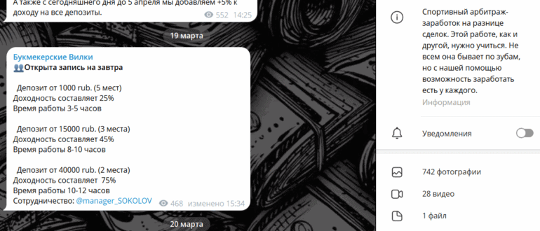 Канал «Букмекерские Вилки» активно продвигает идею «арбитража ставок» — якобы безопасного способа зарабатывать на разнице коэффициентов между букмекерскими конторами. На первый взгляд схема кажется привлекательной: вы инвестируете депозит,…