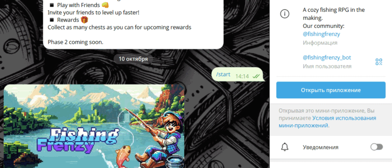 Telegram всё активнее наполняется “игровыми” ботами с обещаниями заработка на токенах и NFT. Одним из таких проектов стал Fishing Frenzy (@fishingfrenzy_bot) — мини-приложение, подающее себя как “уютную RPG…