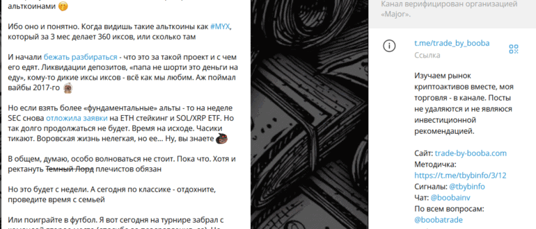 Trade by Booba — крупный Telegram-канал с более чем 60 тысячами подписчиков, позиционирующий себя как «аналитический блог о рынке криптоактивов». В реальности это очередной пример грамотного маркетинга, где…