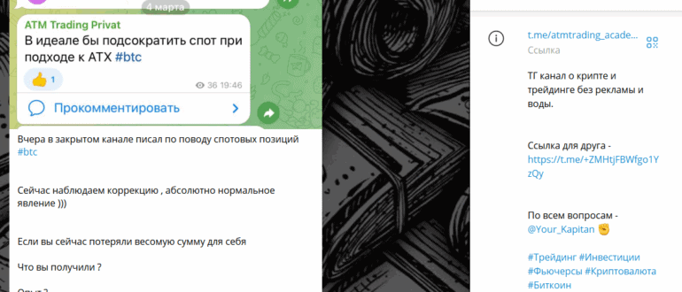 Telegram-канал Atm Trading Academy | Трейдинг позиционирует себя как сообщество для тех, кто хочет научиться торговать криптовалютой, фьючерсами и другими инструментами. Авторы заявляют, что здесь «нет рекламы и…