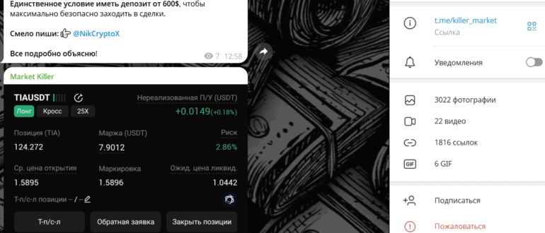 Канал Market Killer в Telegram обещает своим подписчикам «уникальные торговые сигналы» и быстрый заработок. Администраторы подают себя как профессионалов, которые знают, когда входить и выходить с рынка. Но…