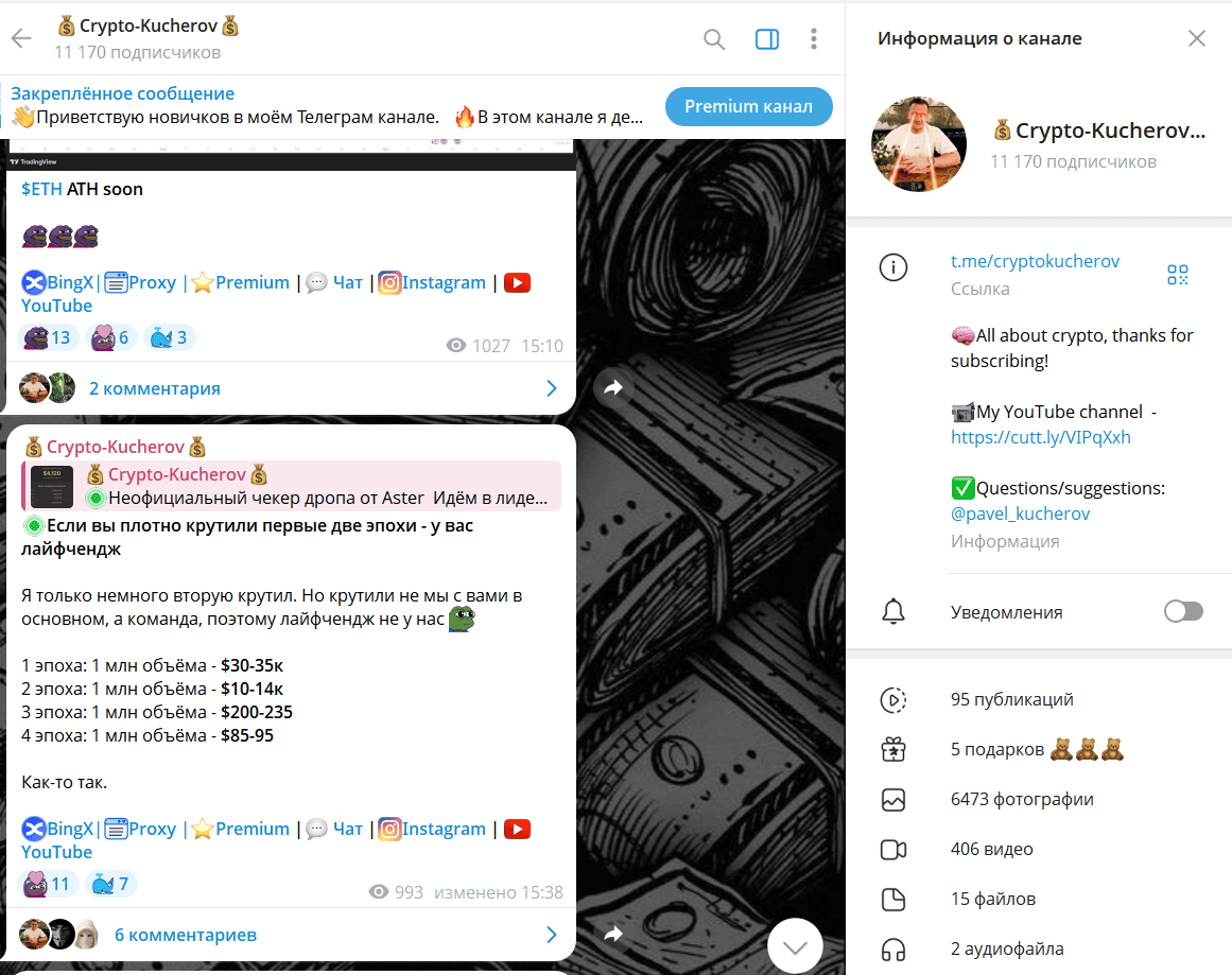 В открытых обсуждениях Crypto-Kucherov часто упоминают наряду с другими Telegram-проектами, где администраторы зарабатывают на доверии аудитории, а не на трейдинге.
