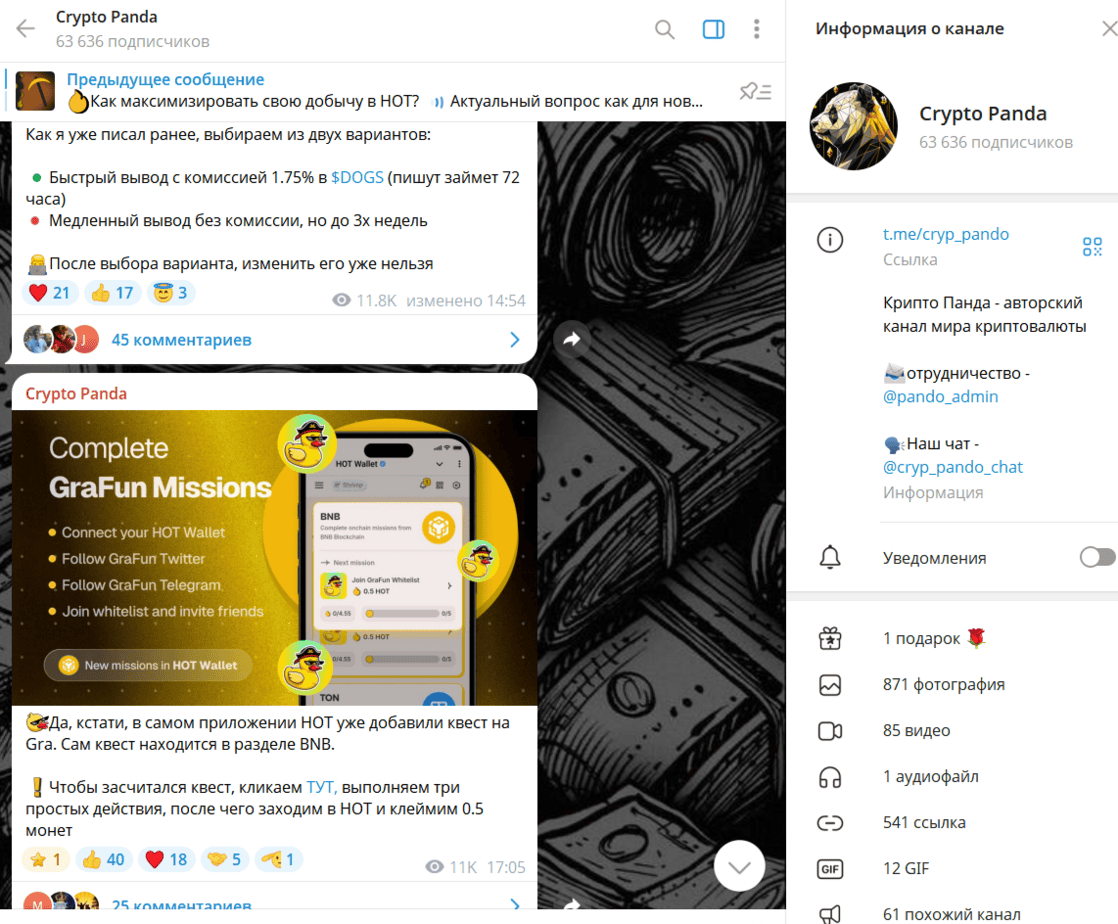 Телеграм сегодня переполнен «крипто-каналами», которые обещают лёгкие токены и мгновенный доход. Один из наиболее раскрученных — Crypto Panda, где администрация публикует посты о “жирных дропах”, “верификации в HOT” и “приватных чатах для активных панд”. За громкими обещаниями, однако, скрывается типичная схема обмана, рассчитанная на доверчивых новичков в мире блокчейна.