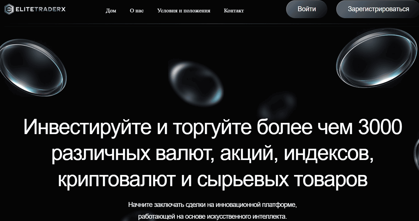 ElitetraderX существует примерно с 2022 года, но доменное имя и информация о компании остаются скрытыми. Платформа активно использует агрессивный маркетинг и громкие заявления о современных технологиях и без рисковых инвестициях.