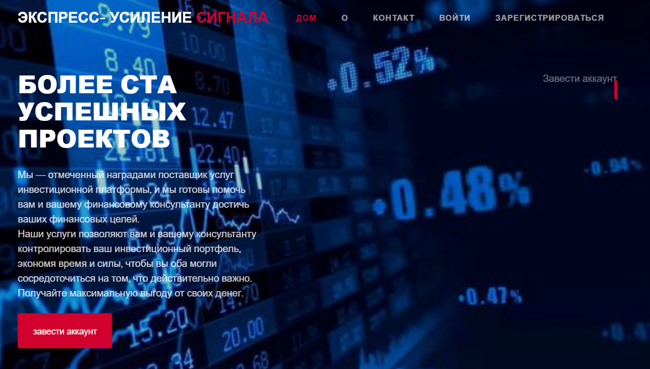 Expressignalgains позиционирует себя как платформу с инвестиционными предложениями, персональной поддержкой и инструментами для работы на финансовых рынках. На сайте размещены заявления о «многочисленных успешных проектах», «профессиональном сопровождении» и «безопасности».