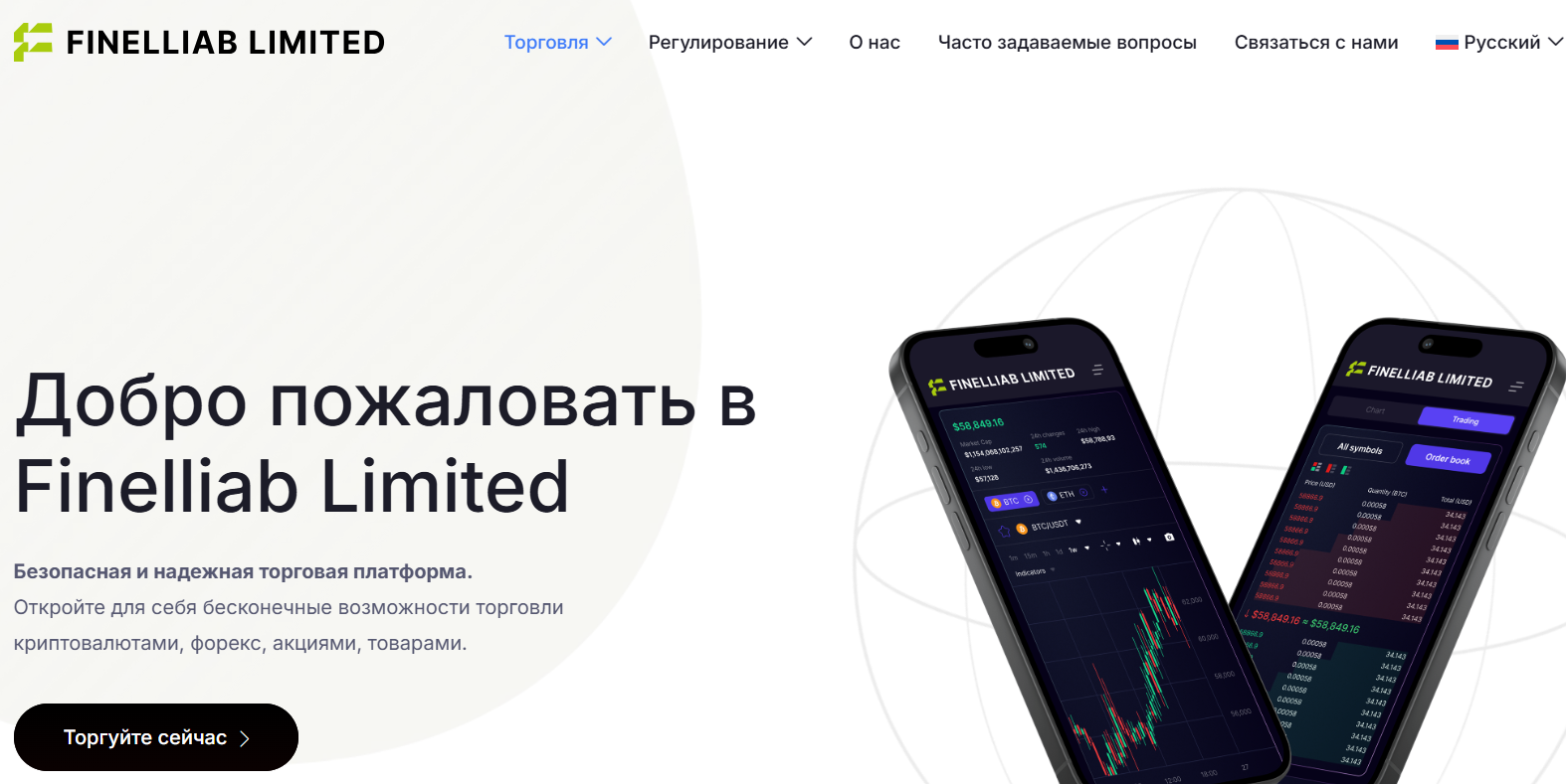 Finelliab Limited пытается создать образ крупного международного брокера, опираясь на свежезарегистрированный домен, заимствованный маркетинг и неоднозначные ссылки на регуляторов.