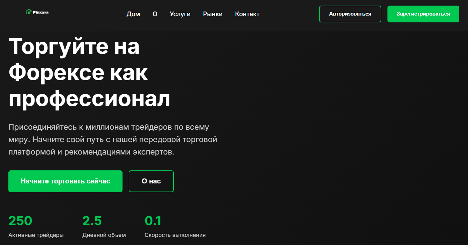 Finxara позиционирует себя как международного брокера с доступом к Форекс и CFD. Компания утверждает, что работает с 2010 года и предлагает более ста торговых инструментов. Сайт подаёт платформу как инновационное решение с быстрым исполнением и высоким уровнем безопасности. Однако фактическая проверка данных показывает существенные расхождения между рекламой и реальной ситуацией.