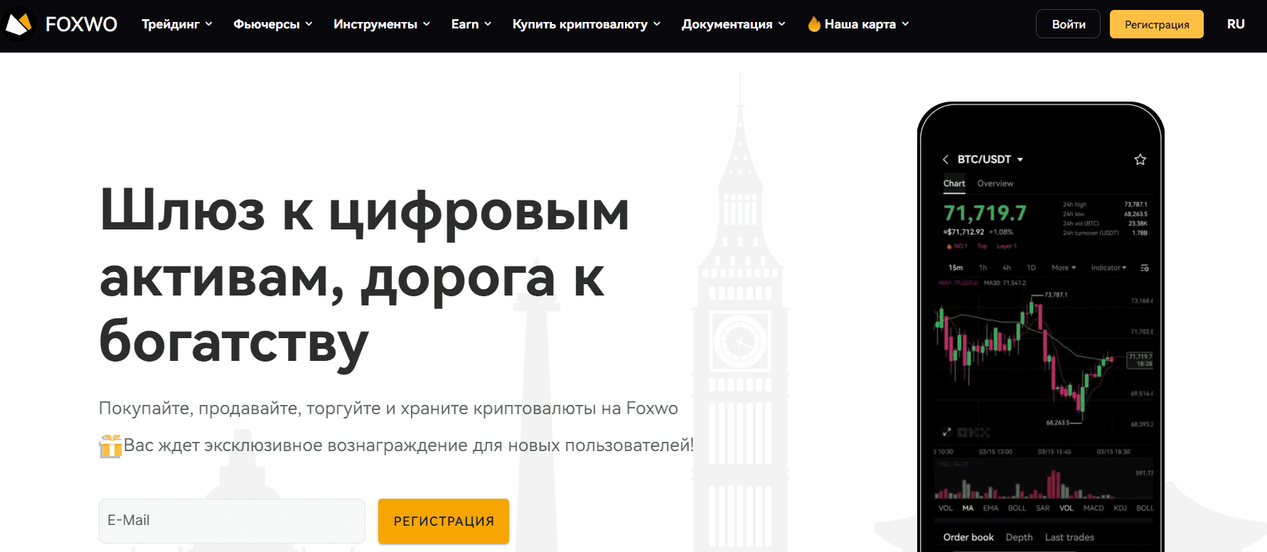 В сети появился проект Foxwo (foxwo.com), который заявляет о себе как о современной криптобирже с множеством инструментов: спотовая торговля, фьючерсы, ETF, индексы и даже кредитное плечо. На первый взгляд сайт выглядит профессионально, но проверка показывает, что это очередной «свежесозданный» проект с целым набором тревожных признаков.