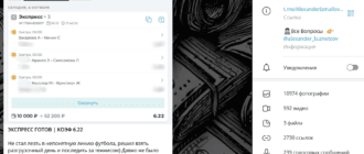 В постах активно используются фразы вроде “ставка на весь банк”, “лёгкие деньги”, “проверенный экспресс”, а также демонстрируются скриншоты “выигрышей” без подтверждения, что они принадлежат реальным пользователям. - Маркетинг через фиктивные успехи