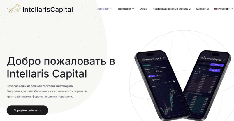 Intellaris Capital позиционирует себя как современную торговую платформу для криптовалют, форекса, акций и товаров. На сайте размещены обещания о «безопасности», «мгновенном исполнении» и «нулевых комиссиях».