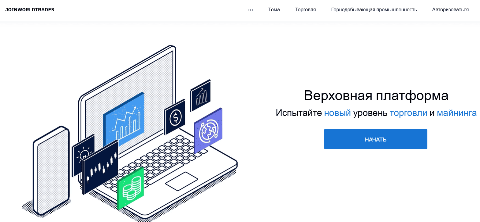 Joinworldtrades позиционирует себя как «верховную платформу для торговли и майнинга» и предлагает клиентам инвестиционные планы от 1000 до 50 000 долларов США. На сайте обещают мгновенное исполнение, нулевые комиссии, спреды от 0,0 пункта и круглосуточную поддержку за 5 минут.