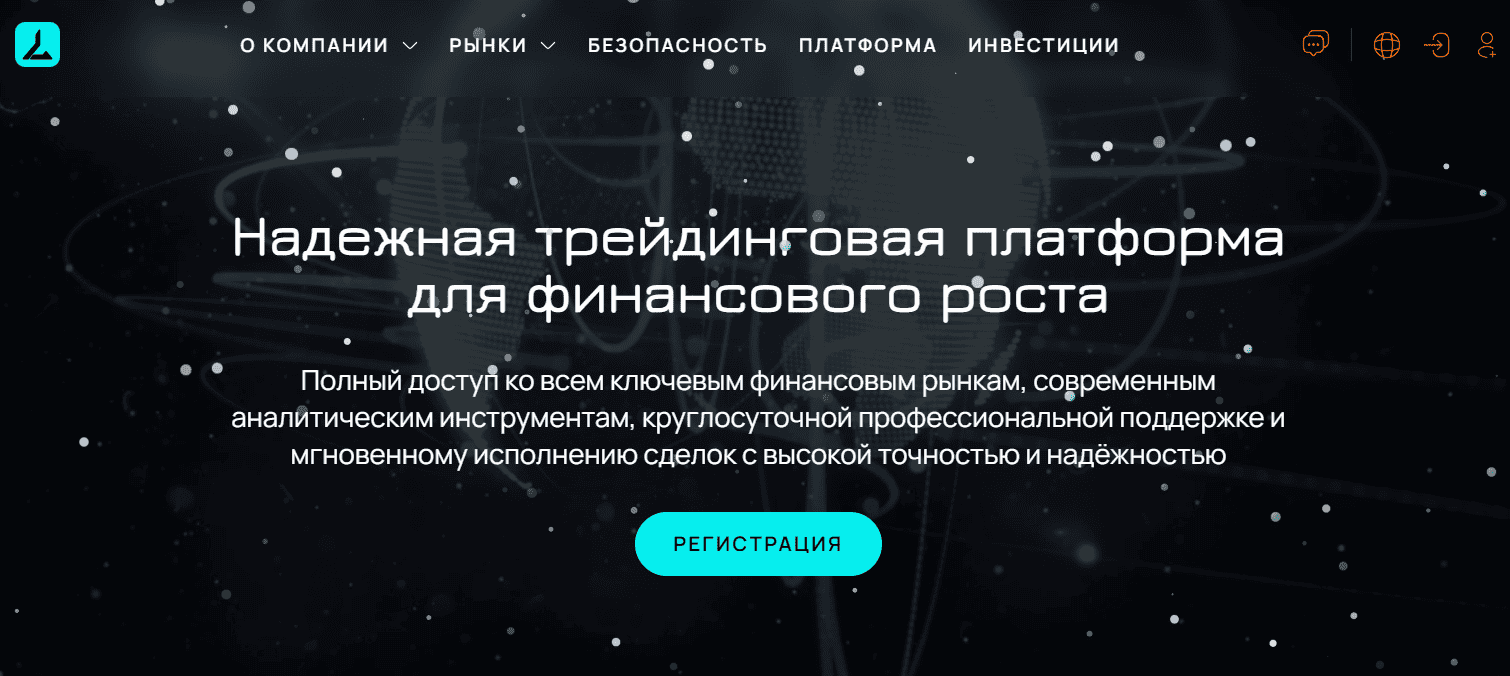 Визуально платформа выполнена в современном стиле. Указаны тарифные планы, торговые счета, статистика оборотов, награды, а также логотипы известных регуляторов. Однако фактическая проверка этих заявлений выявляет серьёзные несоответствия.