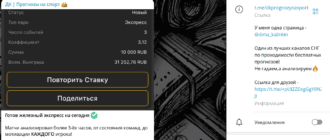 Отсутствие прозрачности. Нет доказательств реальных ставок автора, нет ссылки на открытые трекинги или публичные истории. Перенаправление на сторонние чаты. Пользователей просят перейти «по кнопке ниже», что часто ведёт к продаже «випов» или участию в партнёрских схемах.
