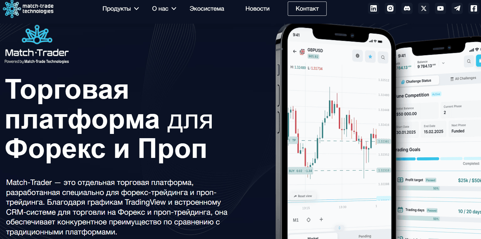 Match-Trade Technologies подаёт себя как крупного разработчика торговых платформ и финтех-решений для брокеров и проп-фирм. На сайте — внушительные заявления о «12 годах опыта», «250 специалистах», «мировом признании», «регулировании» и «клиентах по всему миру».