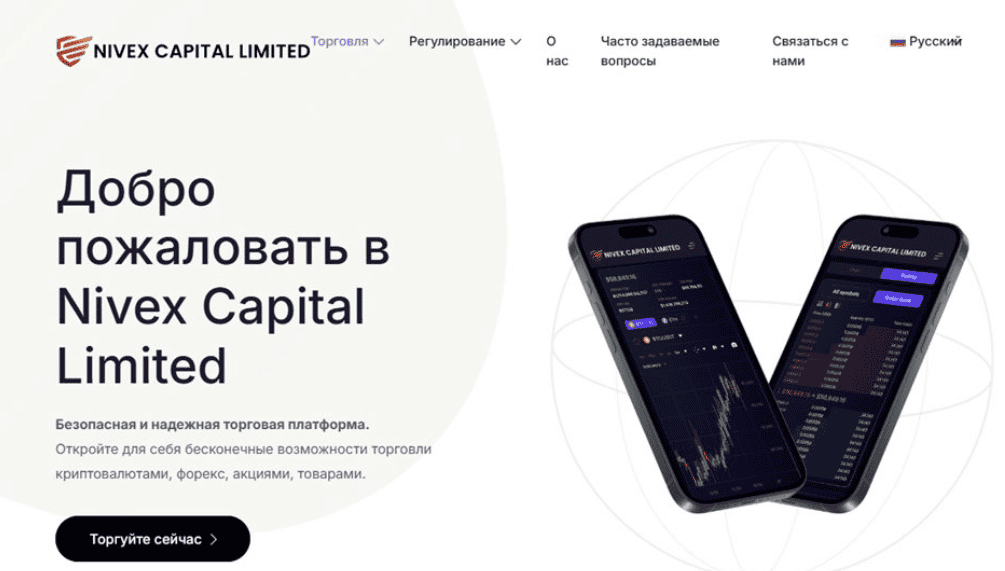 Nivex Capital Limited позиционирует себя как международную торговую платформу. Компания предлагает торговлю криптовалютами, валютами, акциями и товарами. На сайте используются стандартные маркетинговые формулировки. Обещается безопасность, высокий доход и технологичность.