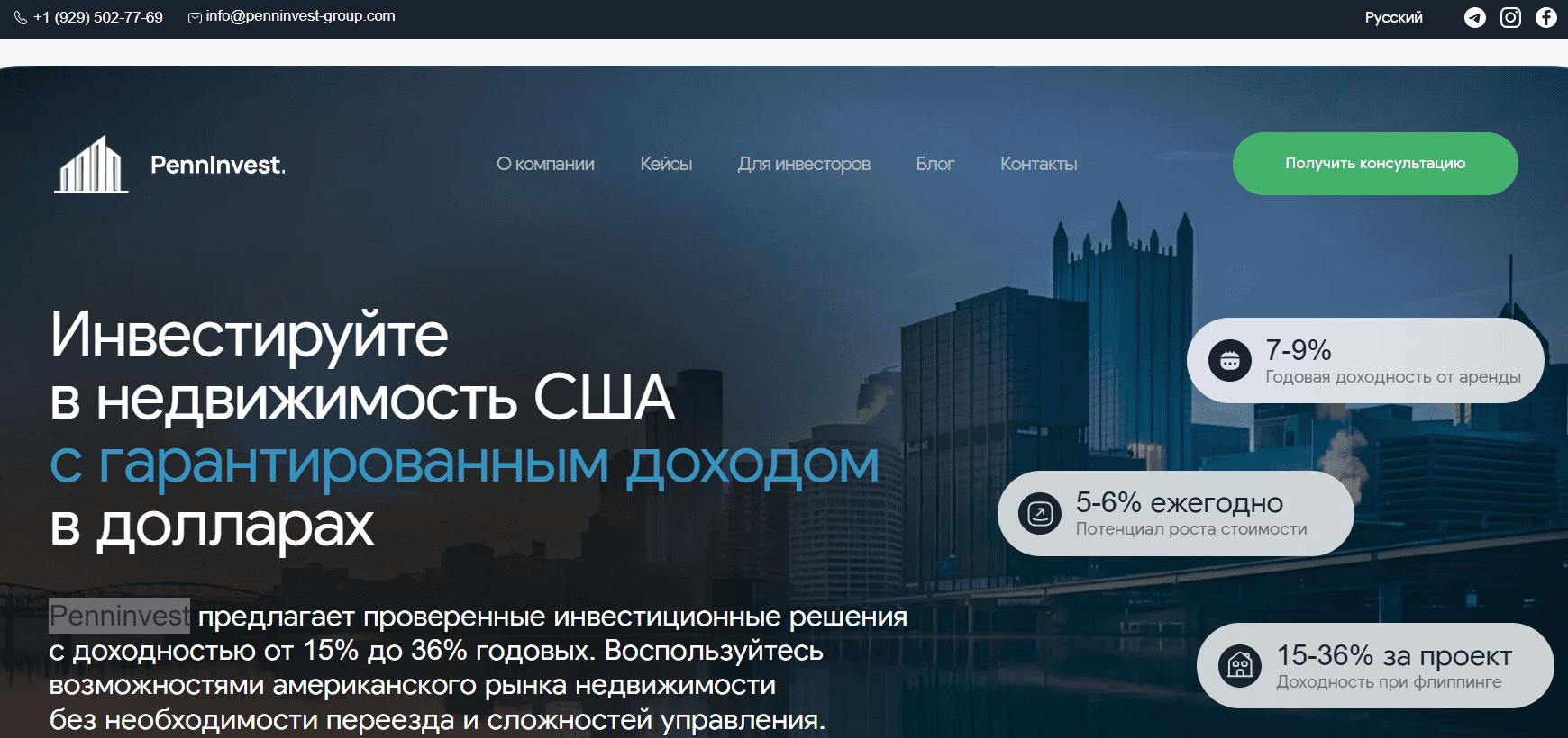 Сегодня разбираем компанию PennInvest (сайт penninvest-group.com), которая активно продвигается в русскоязычном сегменте как “инвестиционный проект в недвижимость США с гарантированным доходом в долларах”. Звучит солидно, но за красивыми обещаниями скрывается слишком много несостыковок.
