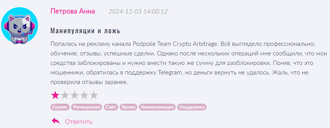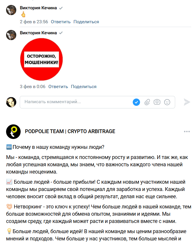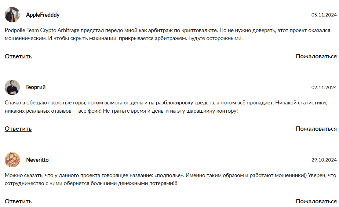 Есть и прямые обвинения: в обсуждениях пользователи открыто называют PODPOLIE TEAM мошенниками, размещая предупреждения вроде «Осторожно, обман!».