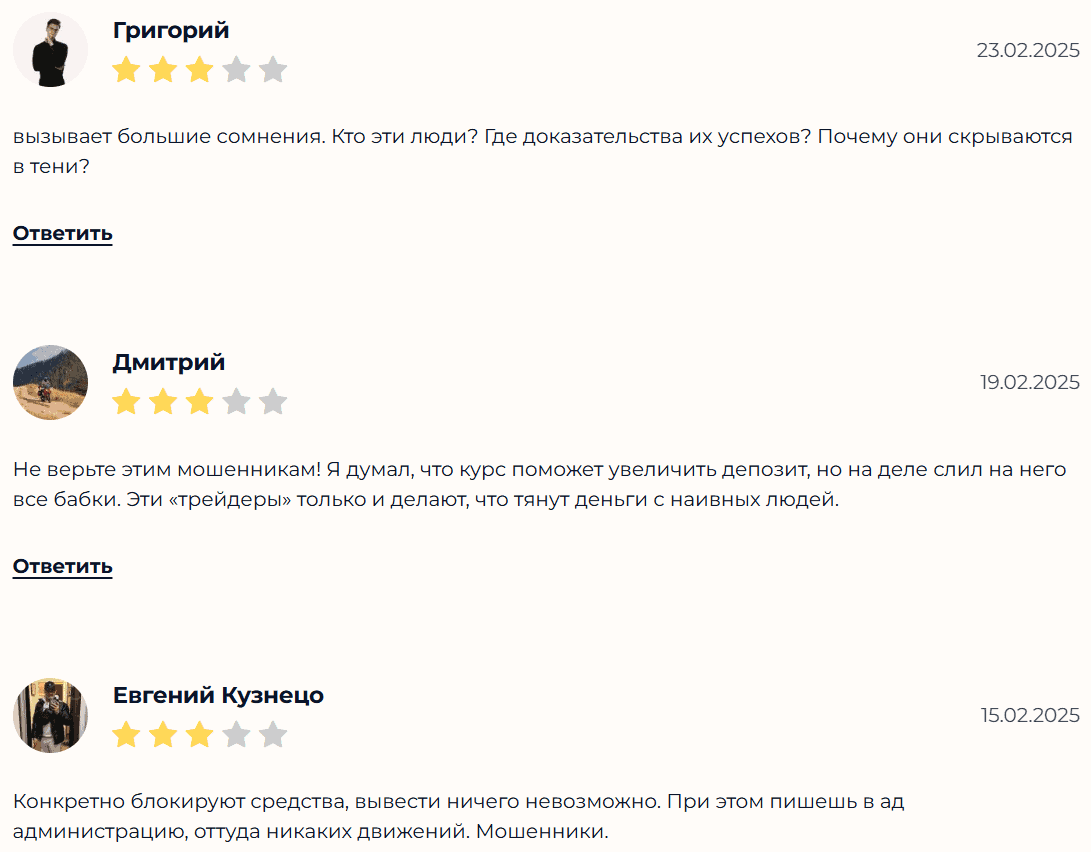 Таким образом, реальные отзывы явно расходятся с тем, что публикуют сами администраторы канала. На сторонних площадках, люди тоже обвиняют канал в мошенничестве.