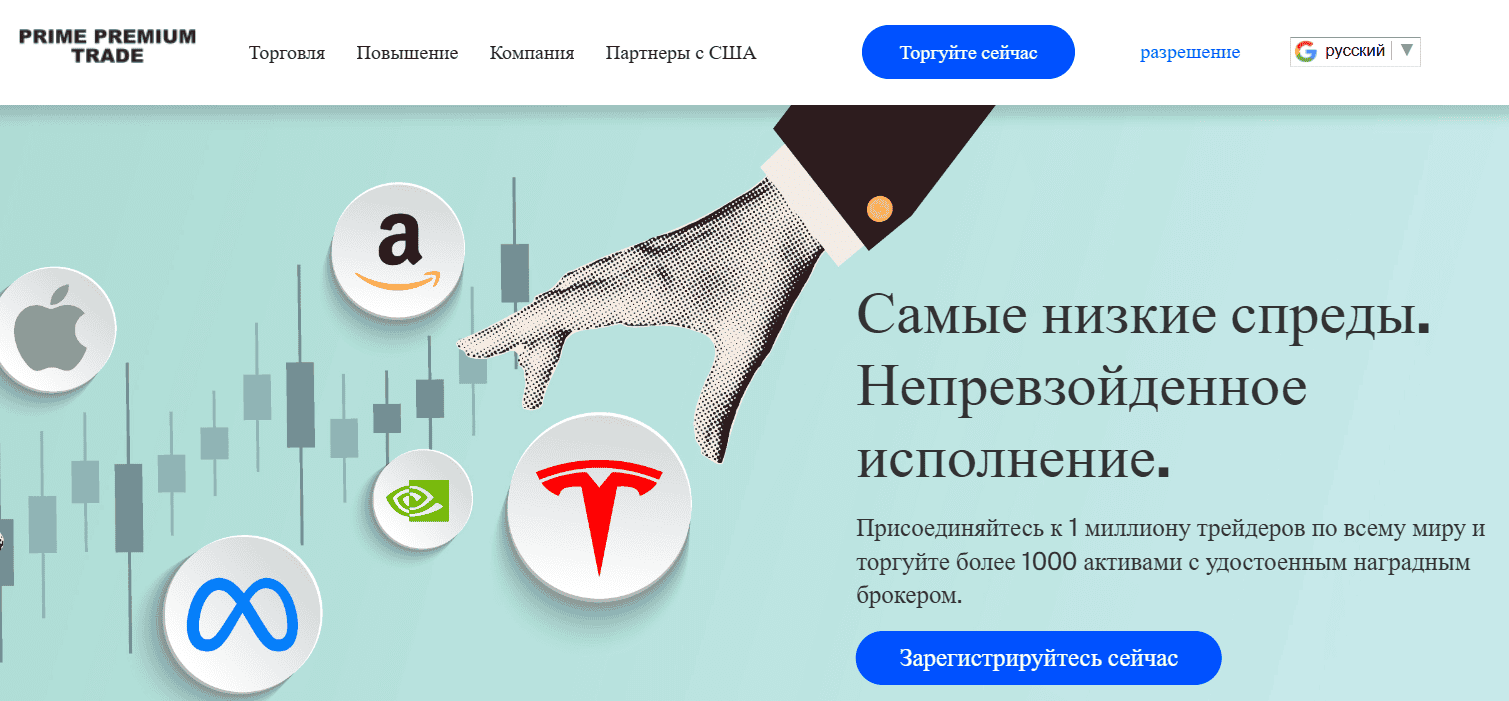 Prime Premium Trades рекламирует себя как глобальную торговую платформу с низкими спредами, молниеносным исполнением сделок и более чем миллионом трейдеров по всему миру. На сайте заявлено свыше 1000 доступных активов, поддержка мирового уровня и премиальный сервис.