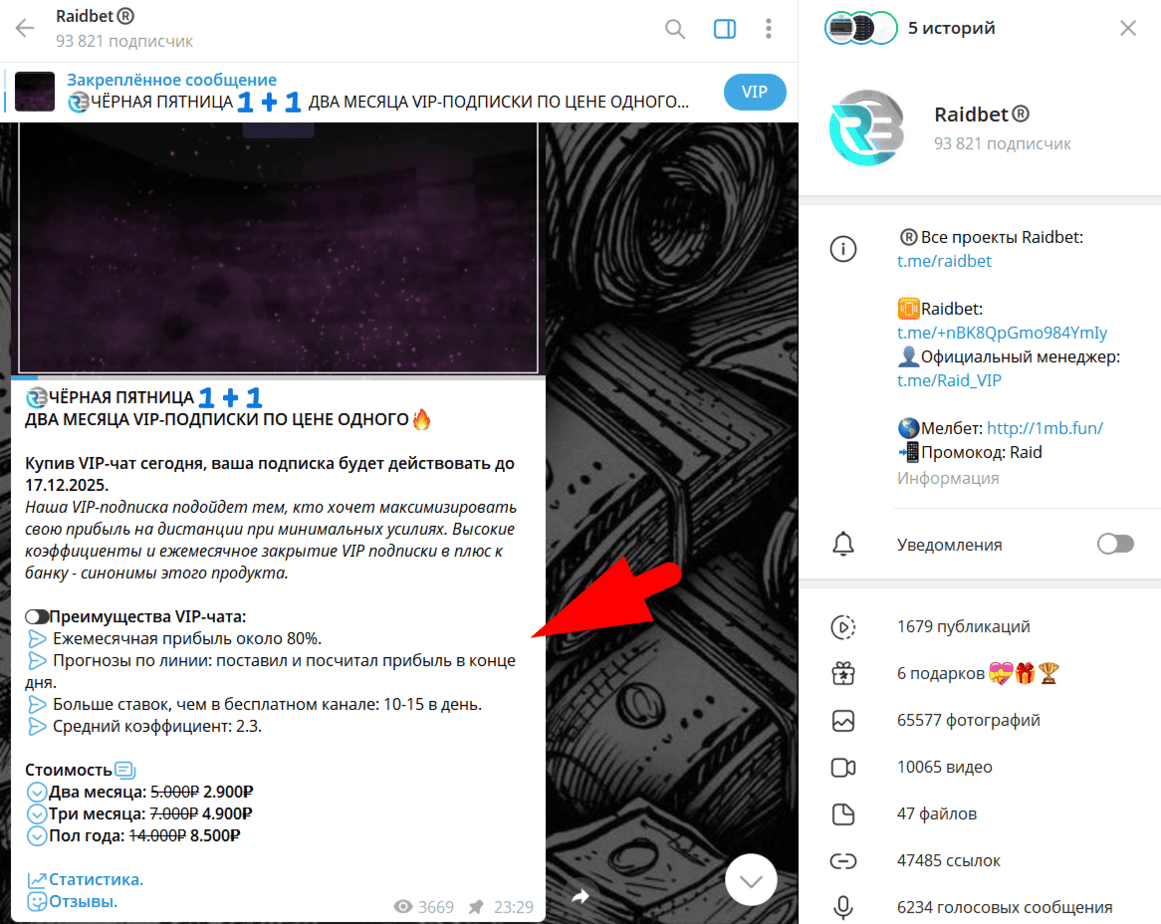 В сети встречаются противоречивые отзывы о Raidbet. Некоторые пользователи отмечают грамотную подачу информации и аккуратный дизайн канала, но большинство комментариев на форумах и в тематических чатах говорят о потере денег после покупки VIP-доступа.