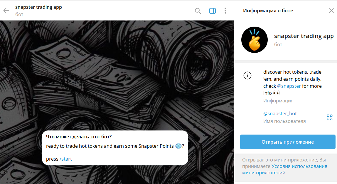 Таким образом, Snapster trading app — не безобидный бот, а часть системы по сбору аудитории для дальнейшего использования в сомнительных проектах.