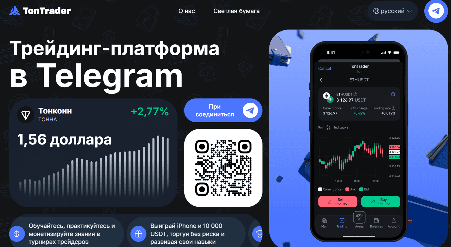 TonTrader создаёт впечатление современной платформы, интегрированной в экосистему Telegram. Разработчики обещают простой доступ к торговле, быстрые операции, турниры, обучение и возможность развивать навыки трейдинга.