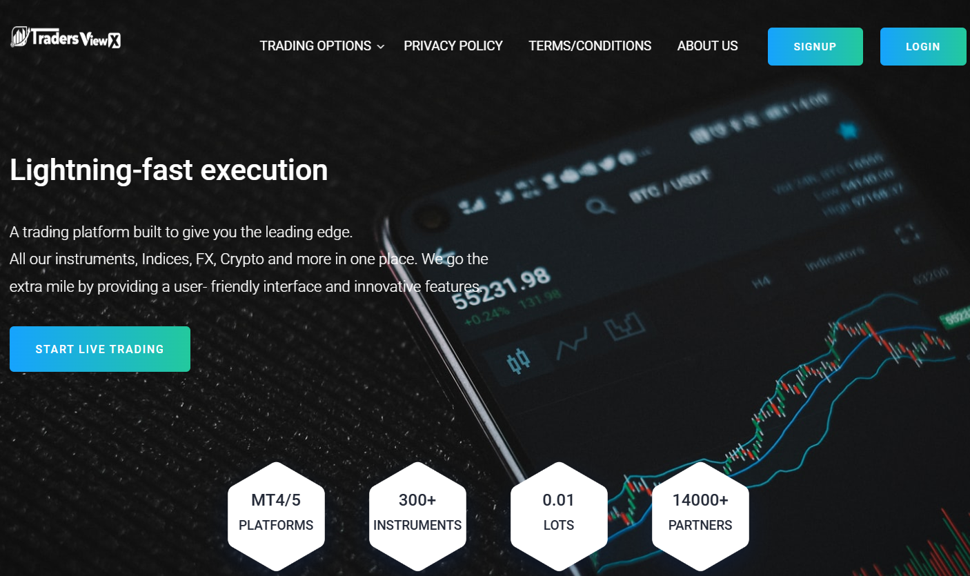 TRADERS VIEWX подает себя как современную торговую платформу. На сайте размещены обещания молниеносного исполнения сделок, доступа к сотням инструментов и профессиональной поддержке.