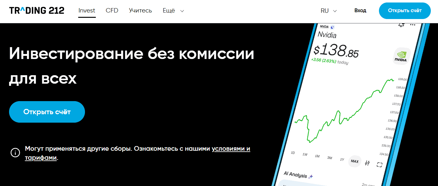 Trading 212 — это регулируемый международный брокер с долгой историей работы, акцентом на инвестиции без прямых комиссий и упрощенный пользовательский опыт. Платформа подходит для начинающих инвесторов и тех, кто рассматривает долгосрочные стратегии с акциями и ETF.