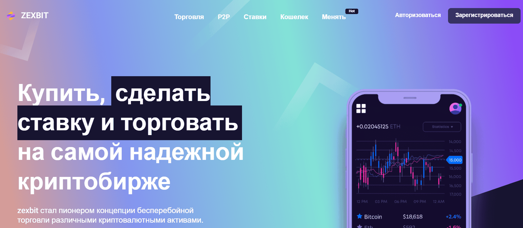 На главной странице проекта говорится, что Zexbit — это “глобальная торговая экосистема”, предлагающая: